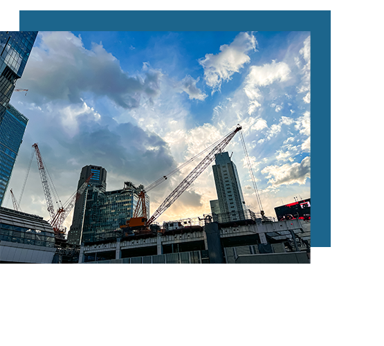 ビルや橋梁、倉庫や発電所など、様々な構造物の建設に必要となる、足場・安全設備を設置します。外壁の塗装や補修のための工事にも必要となります。当然足場の解体も含まれます。